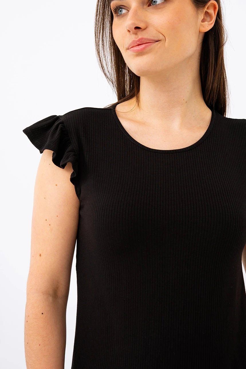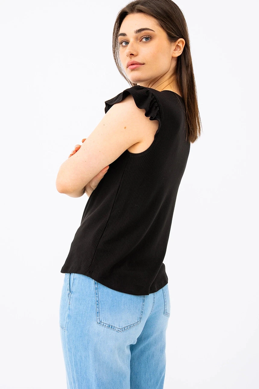 Camisole noire à volants – Élégance simple et féminine