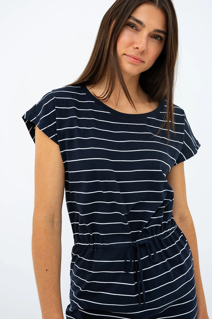 Décontractée et féminine, la robe t-shirt cintrée à la taille par Only est une pièce facile à porter au quotidien. Son col rond classique et ses mancherons lui confèrent un style épuré, tandis que la taille ajustable avec cordon coulissant à nouer permet de souligner la silhouette selon vos envies. L’ourlet arrondi ajoute une touche de douceur au tombé. Confectionnée dans une matière légère et extensible, cette robe assure un confort optimal tout au long de la journée.