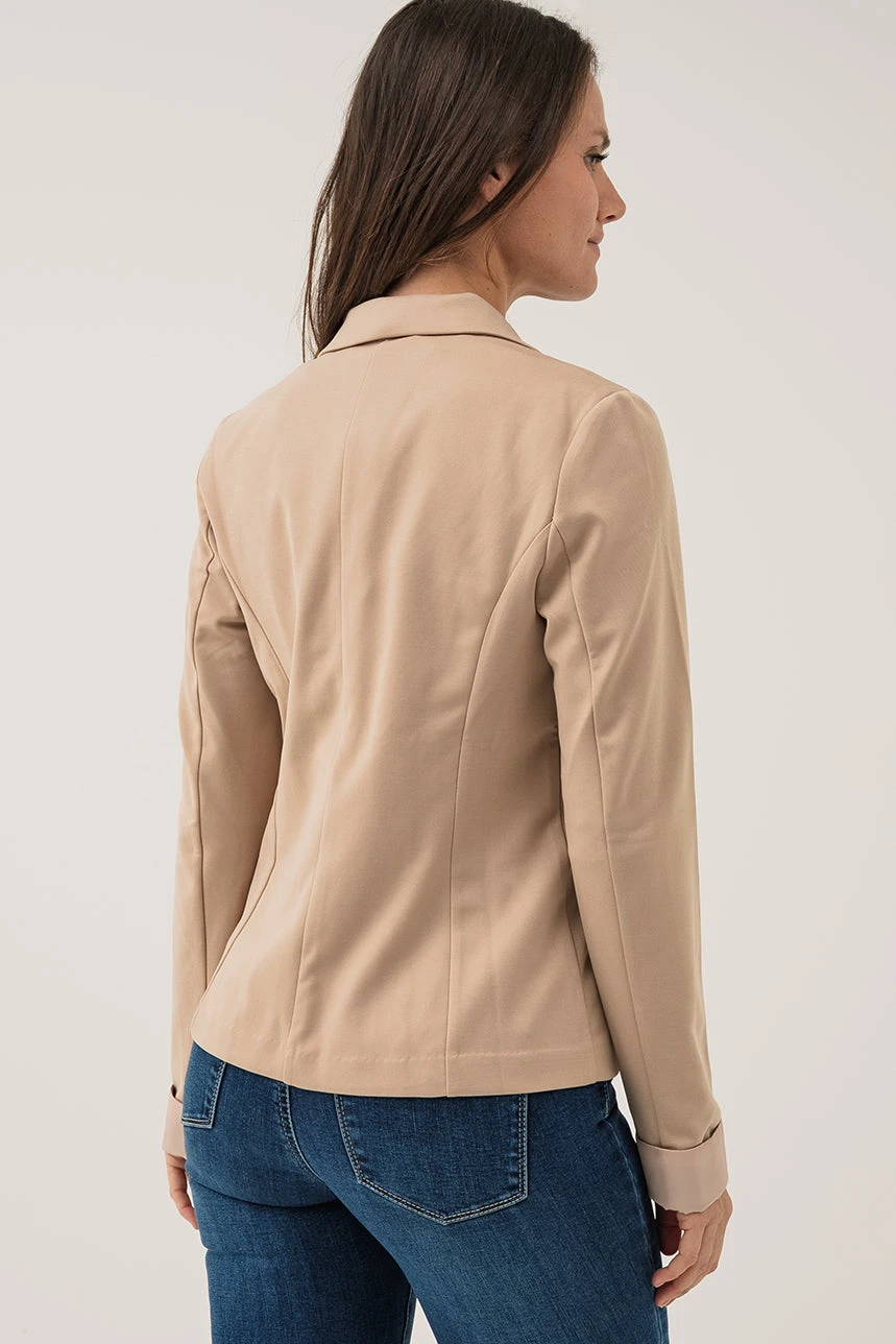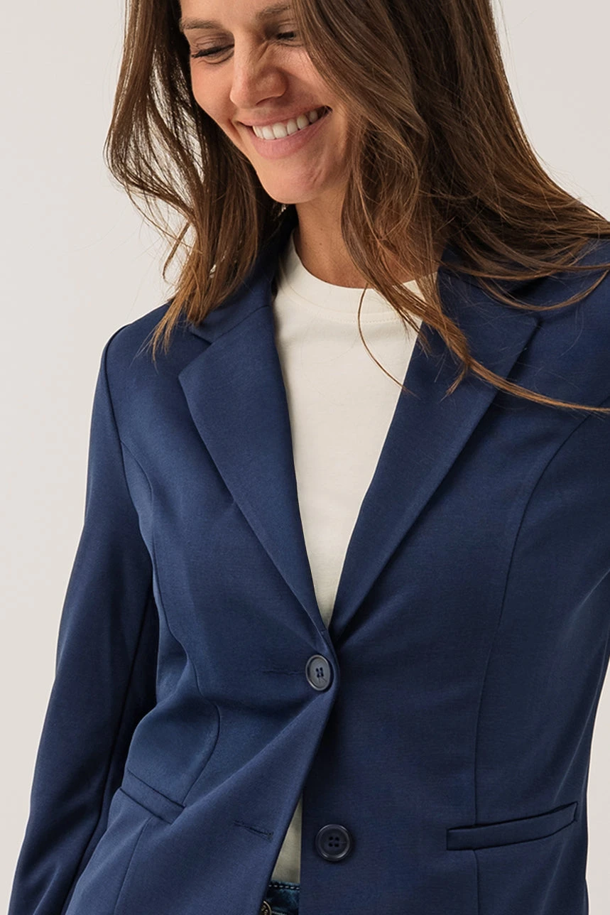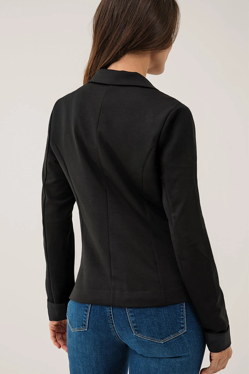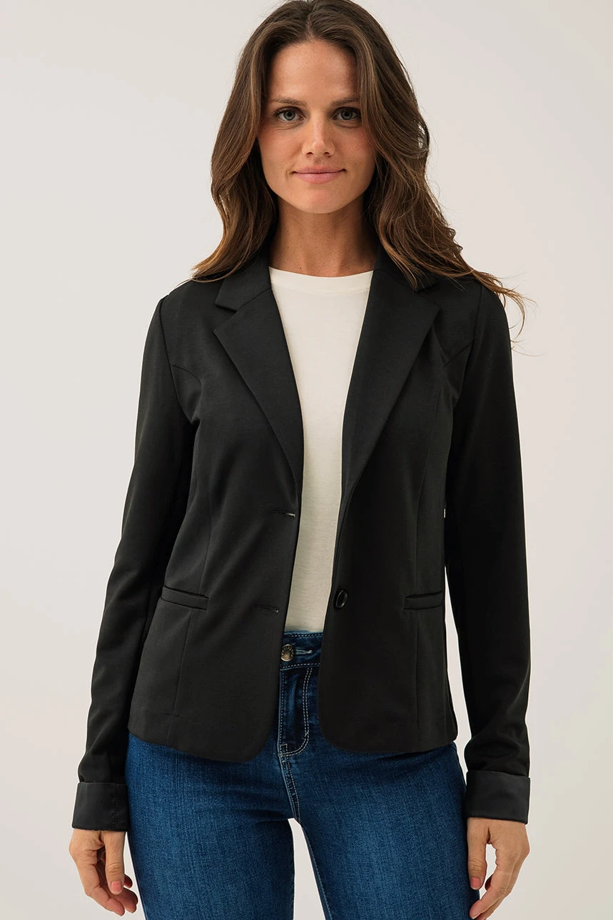 Le blazer uni classique incarne l’élégance intemporelle avec sa coupe régulière et son col à revers soigné. Ses manches longues et ses fausses poches à l’avant apportent une touche structurée, tandis que sa matière extensible et confortable assure une aisance parfaite tout au long de la journée. Un essentiel polyvalent pour compléter une tenue professionnelle ou un look plus décontracté.