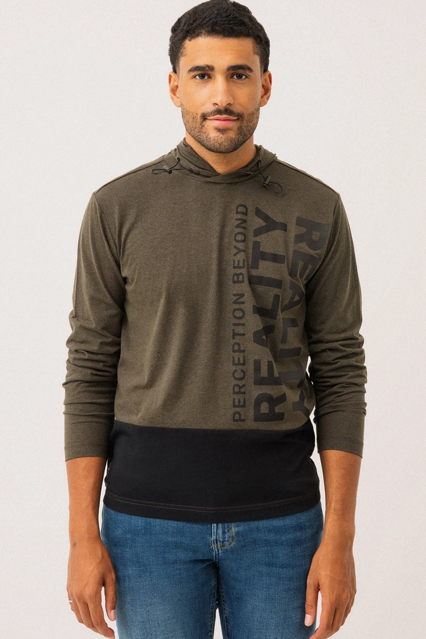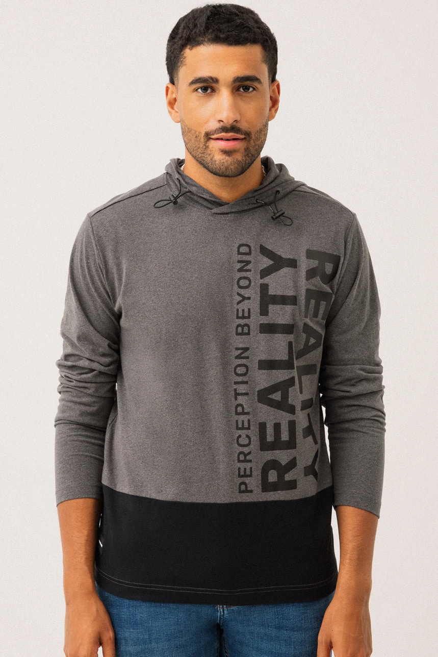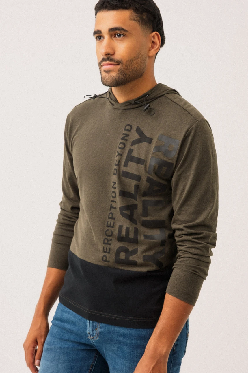 Le chandail à capuche par Projek Raw allie confort et style moderne avec sa coupe régulière et sa matière en jersey de type t-shirt. Conçu avec une capuche munie d’un cordon élastique d’ajustement, il se distingue par son empiècement contrastant au bas à l’avant qui apporte une touche graphique et urbaine. Des imprimés décoratifs à l’avant ajoutent du caractère, tandis qu’une petite étiquette en tissu au bas du côté droit complète les détails soignés. Un essentiel décontracté qui se porte facilement au quotidien.