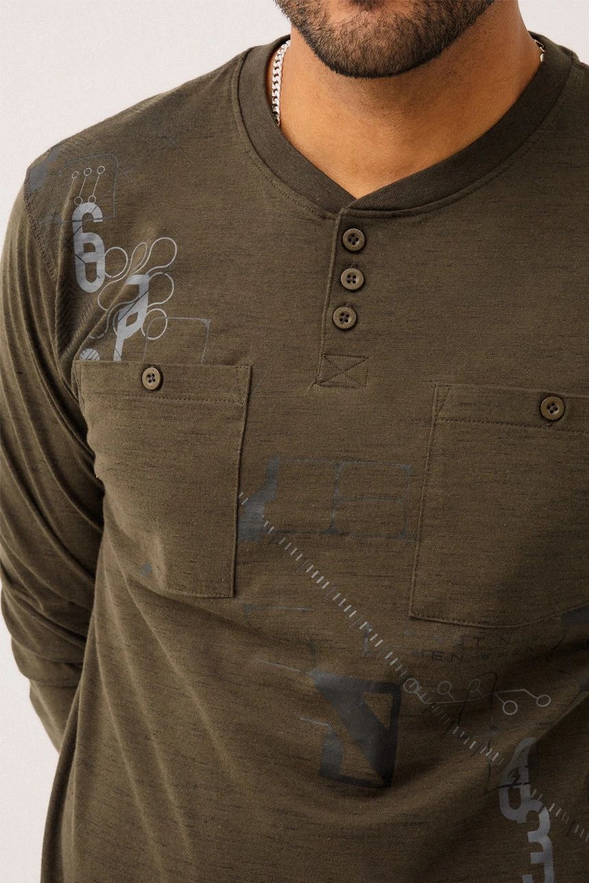 Le chandail à encolure Henley par Projek Raw allie confort et détails modernes. Confectionné en jersey doux de style t-shirt, il présente une coupe régulière facile à porter au quotidien. Son col rond avec bordure côtelée est agrémenté d’une encolure Henley à 3 boutons, apportant une touche décontractée. À l’avant, deux poches appliquées avec boutons ainsi qu’un imprimé distinctif ajoutent du caractère à la pièce. Une petite étiquette en tissu au bas du côté droit vient compléter les finitions. Un chandail polyvalent qui combine style et confort avec subtilité.