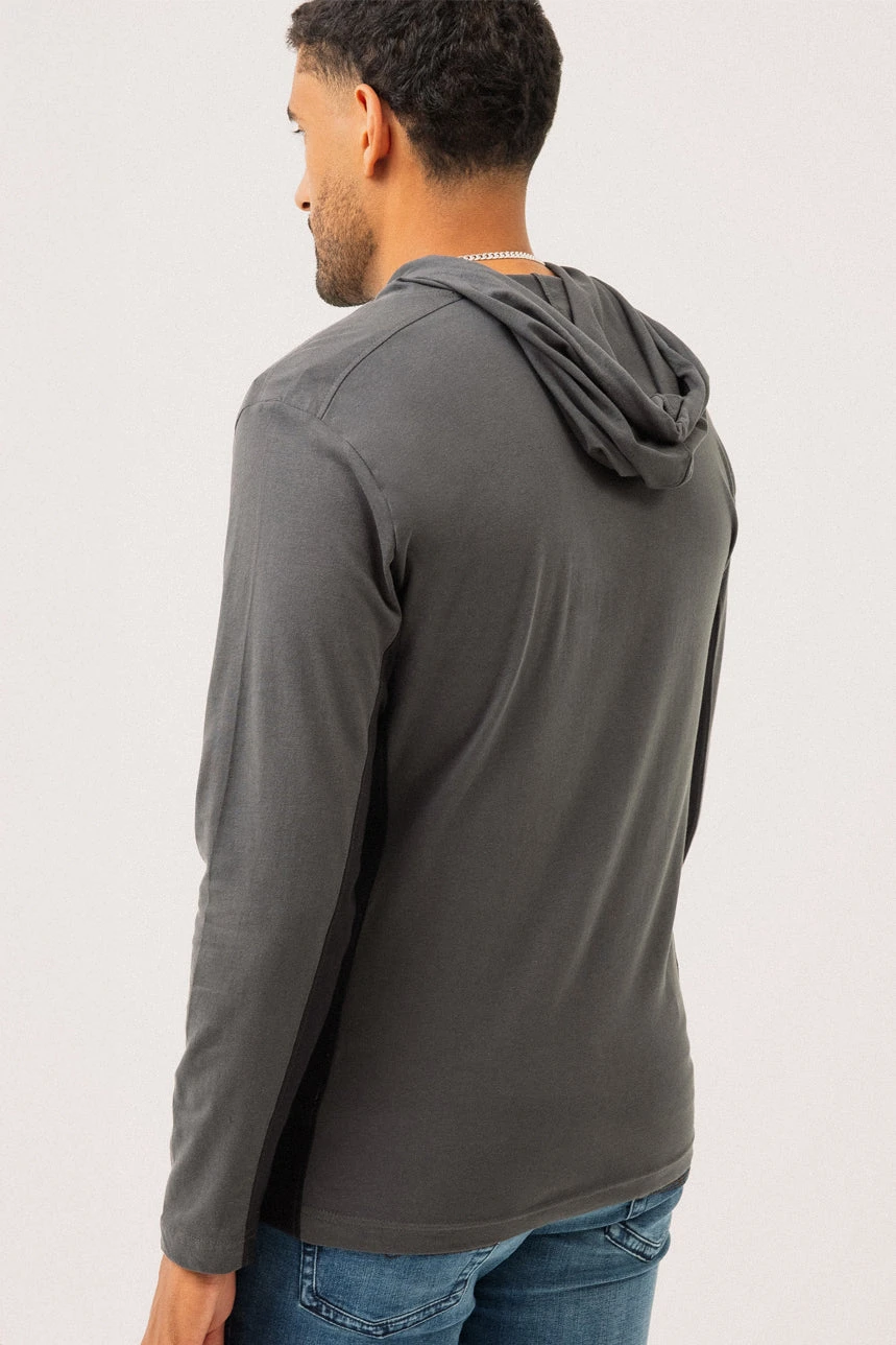 Le chandail charcoal à capuche imprimé présente une coupe régulière offrant un équilibre entre confort et style. Sa capuche avec cordon d’ajustement permet un ajustement personnalisé, tandis que les empiècements contrastants aux latérales et sous les manches ajoutent une touche moderne et dynamique. Il est doté d’une poche appliquée à la poitrine gauche et d’imprimés à l’avant qui lui confèrent un caractère urbain distinctif. Une étiquette en tissu au bas du côté droit vient compléter les détails soignés. Confectionné dans un tissu jersey doux de type t-shirt, il assure un confort décontracté au quotidien.