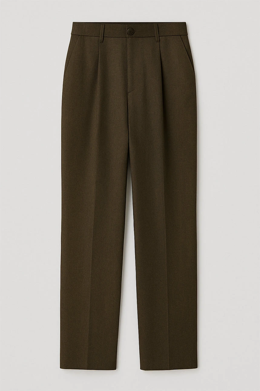 Le pantalon droit jambe large brun chiné allie confort et élégance dans un style polyvalent. Sa coupe droite et sa taille régulière assurent une silhouette classique et flatteuse, tandis que la ceinture de 1 ¾ pouces avec élastique au dos offre un ajustement souple et pratique. Doté de deux poches inclinées sur les côtés, il se distingue par sa fonctionnalité et sa finition soignée. La fermeture à braguette avec deux crochets et un bouton à l’avant complète le design, faisant de ce pantalon une pièce idéale autant pour le bureau que pour des occasions décontractées chic.