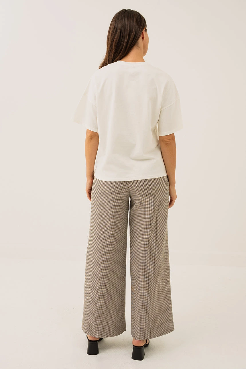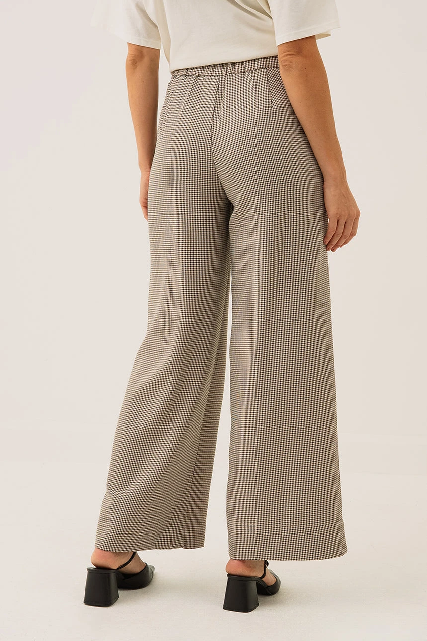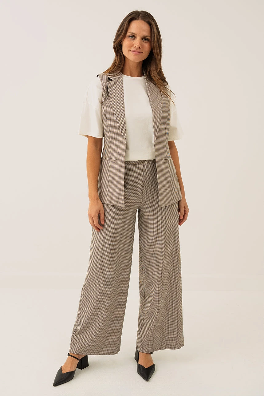 Le pantalon pied de poule brun arbore une coupe ample avec une taille rĂ©guliĂšre lĂ©gĂšrement ajustĂ©e, rehaussĂ©e par une ceinture de 1 œ pouce dotĂ©e dâun Ă©lastique au dos et de fronces pour un confort optimal. Sa jambe large assure libertĂ© de mouvement et fluiditĂ©, tandis que les poches discrĂštement intĂ©grĂ©es dans les coutures latĂ©rales ajoutent praticitĂ© et discrĂ©tion. La fermeture Ă©clair invisible Ă la latĂ©rale gauche, accompagnĂ©e dâun bouton et dâun crochet, complĂšte ce modĂšle alliant Ă©lĂ©gance et confort.