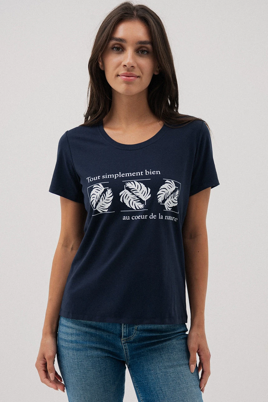 Le t-shirt droit imprimé se distingue par sa coupe ajustée qui épouse légèrement la silhouette tout en restant confortable. Il présente un col rond classique et un imprimé à l’avant qui apporte une touche de style. L’ourlet droit complète son design simple et polyvalent, idéal pour un look décontracté au quotidien.