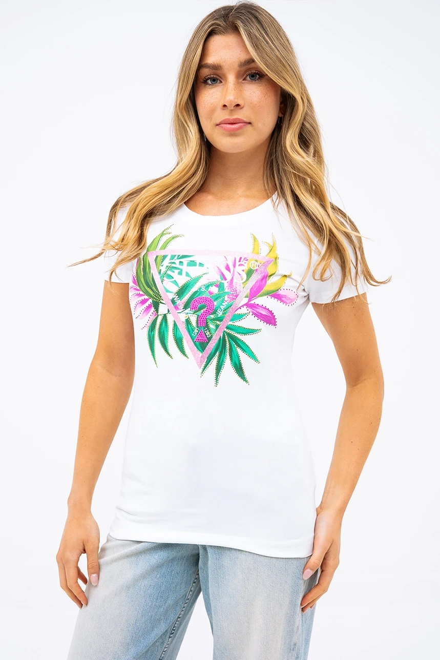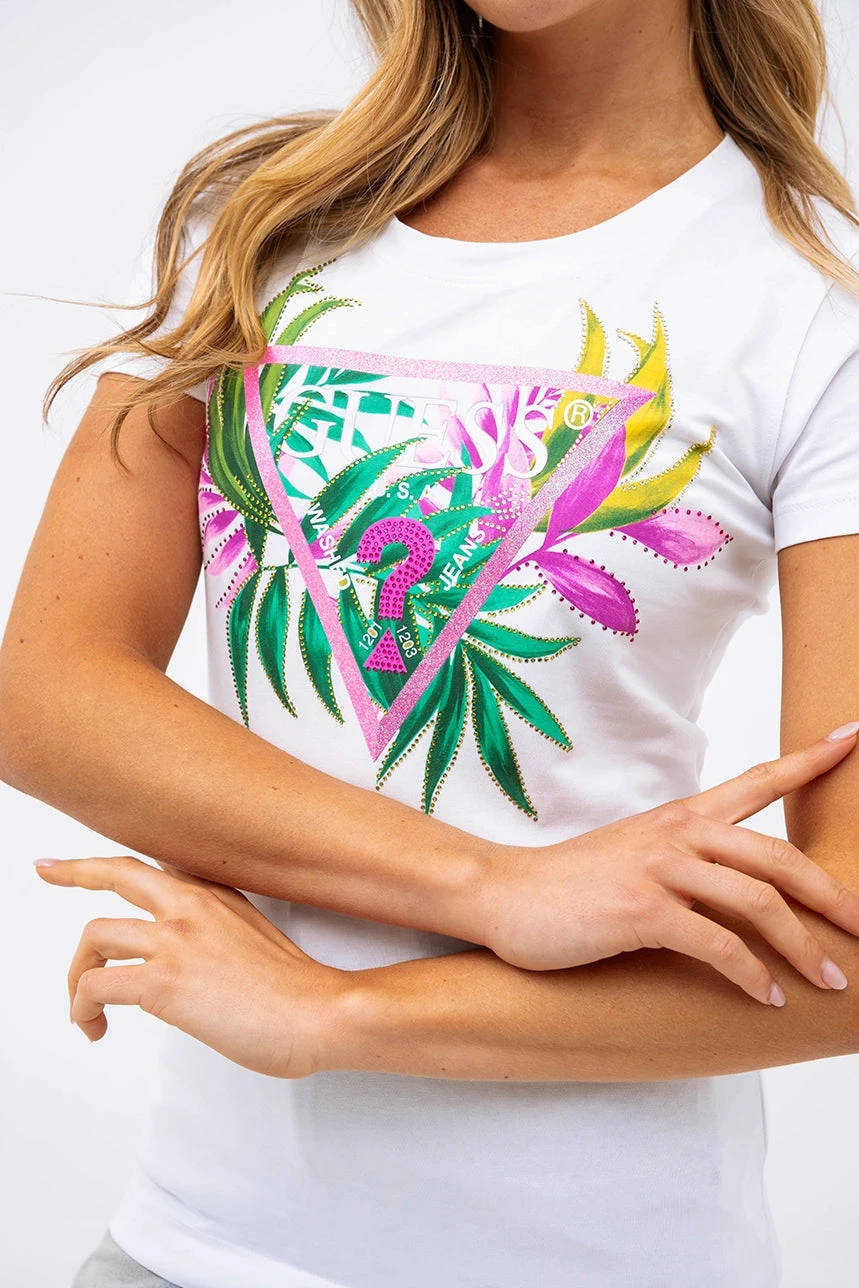 T-shirt Guess logo feuillage et strass
