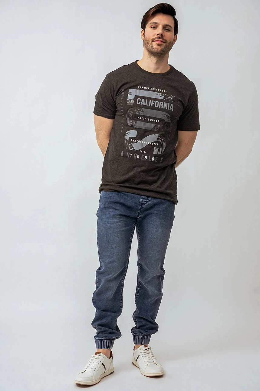 Adoptez un look décontracté avec le t-shirt imprimé « California », un incontournable au confort moderne. Sa coupe régulière, son col rond et ses manches courtes en font un classique facile à agencer, tandis que sa matière douce et extensible assure un port agréable tout au long de la journée. Idéal pour les journées relax ou les sorties sous le soleil, ce t-shirt combine style et aisance.