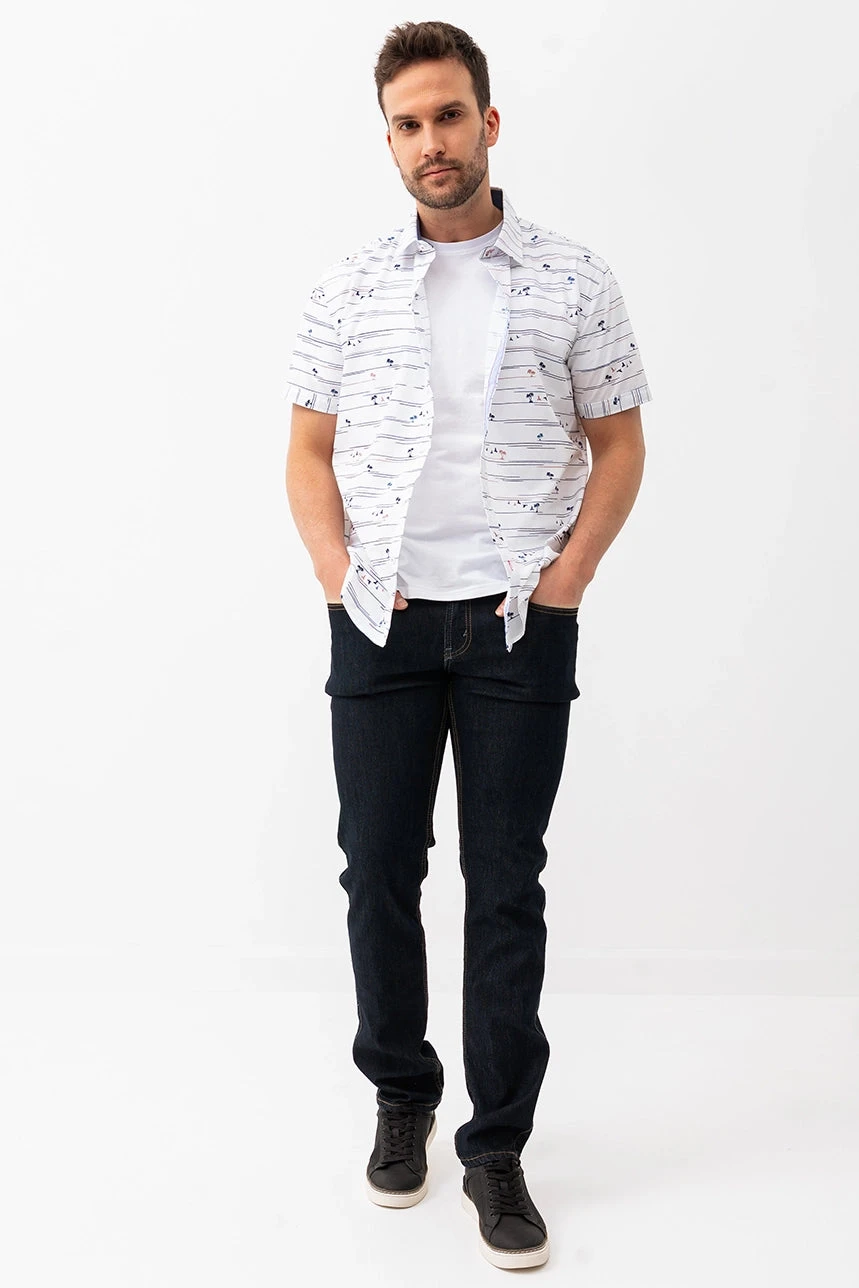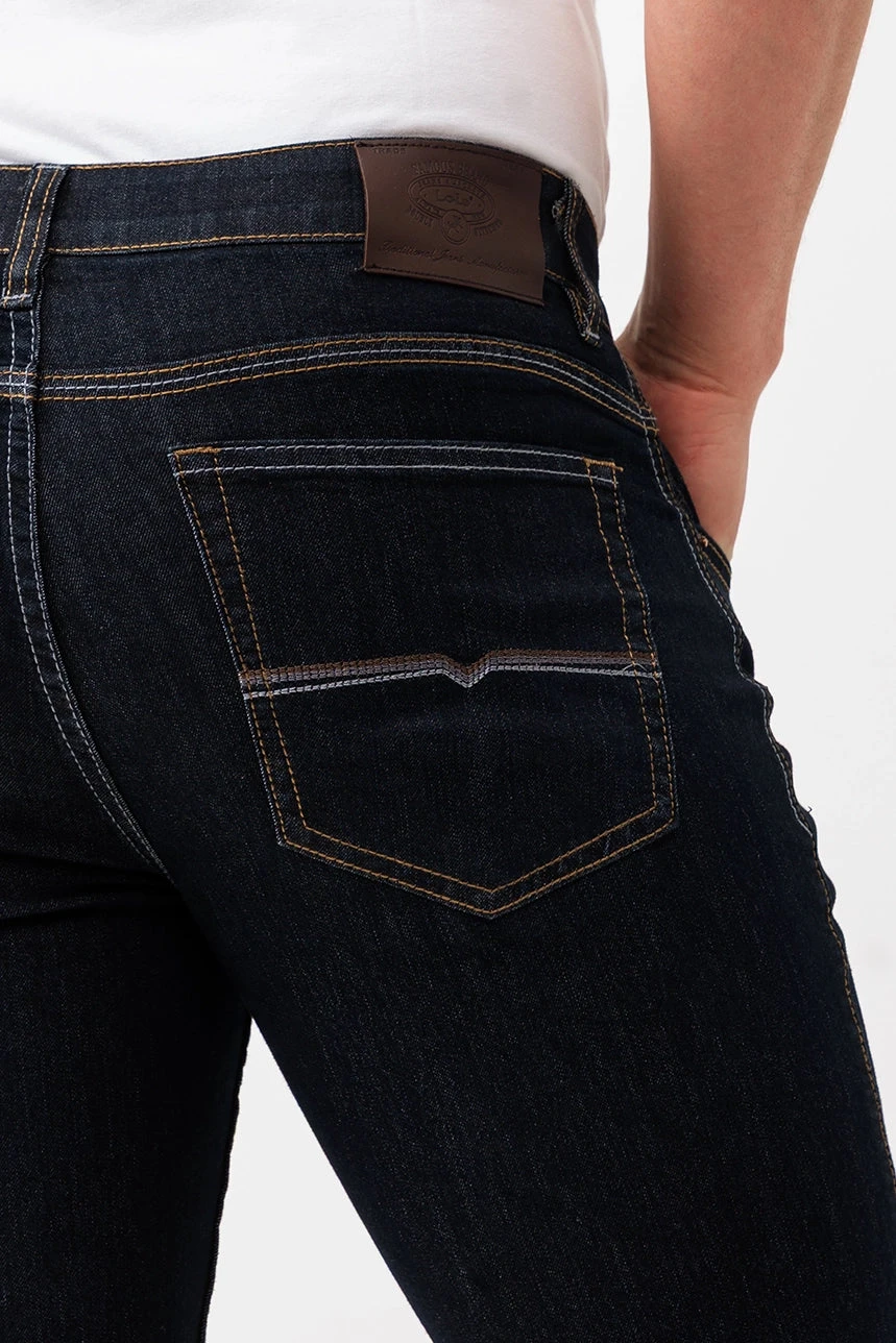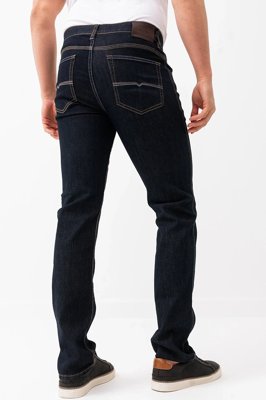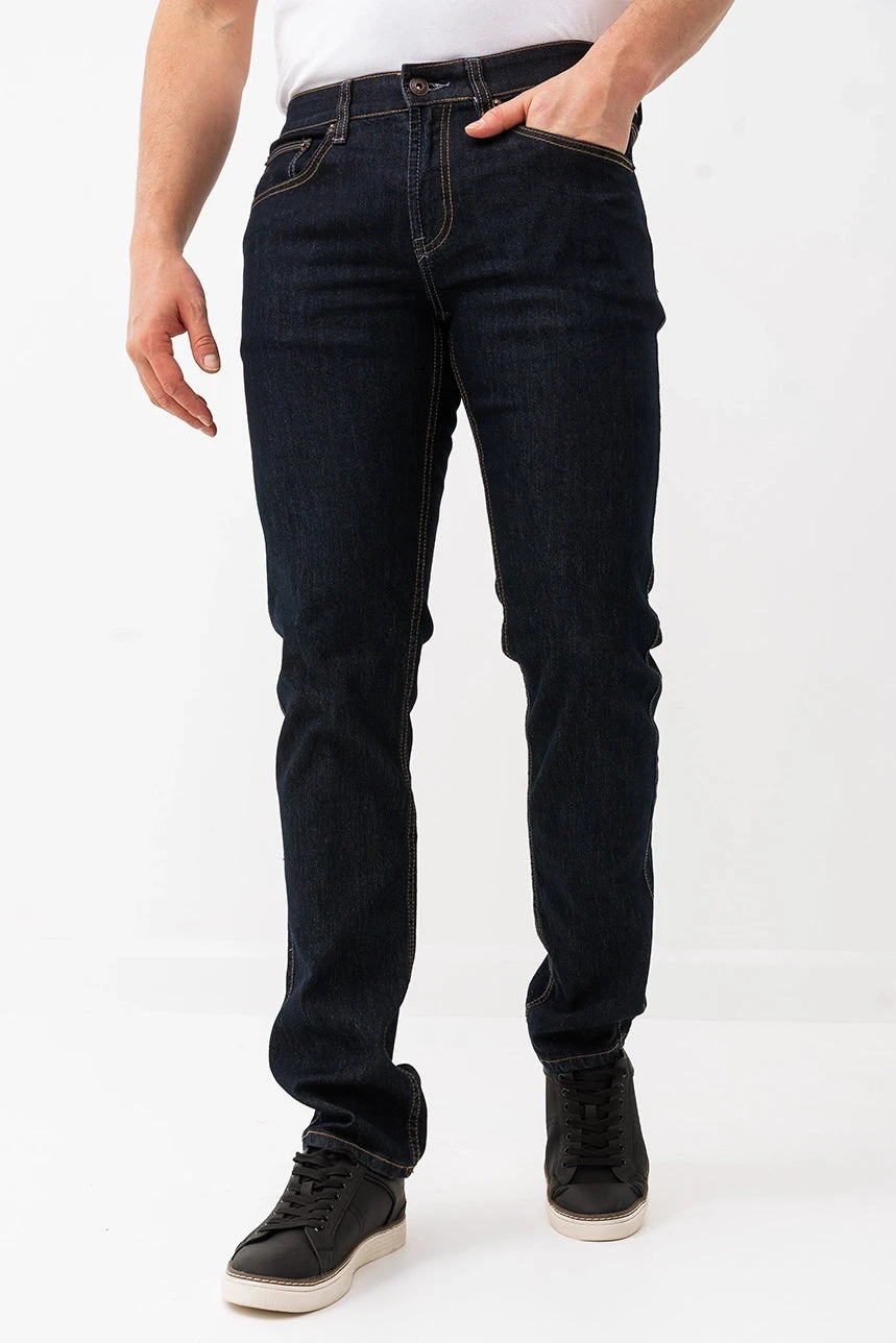 Alliant confort moderne et allure épurée, le jeans étroit foncé modèle Peter est un incontournable du quotidien. Sa taille semi-basse et sa jambe étroite offrent une silhouette ajustée sans compromis sur l’aisance, grâce à un denim extensible et confortable. L’élastique intégré à la taille renforce le confort, tandis que la fermeture éclair avec bouton, les passants de ceinture et la coupe 5 poches assurent une finition classique et fonctionnelle. Parfait pour un look soigné, du bureau à la sortie.