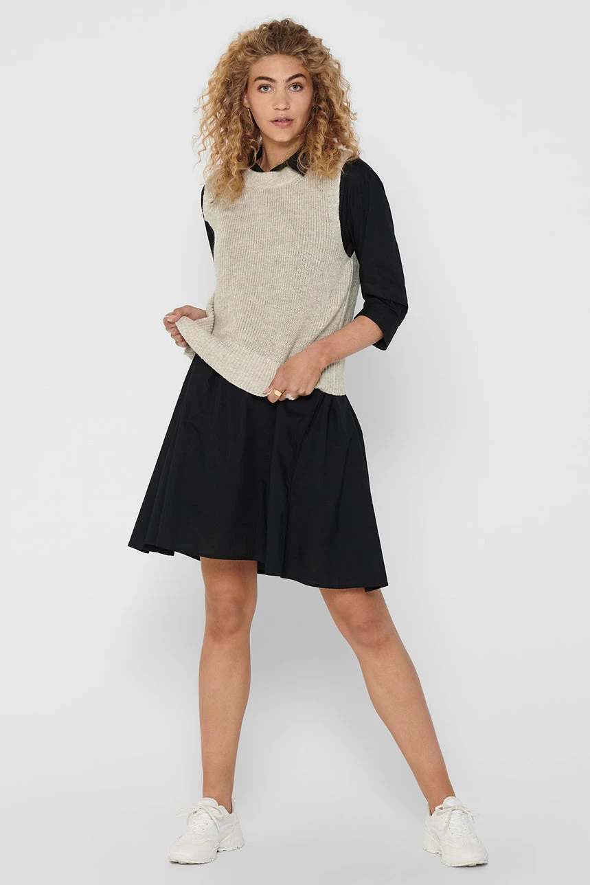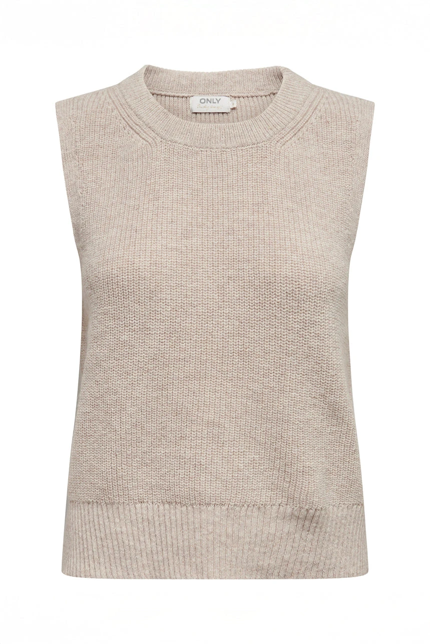 Le chandail sans manches en tricot beige par Only se caractérise par sa coupe droite, offrant une silhouette nette et élégante. Doté d’un col rond classique et dépourvu de manches, il permet de superposer facilement avec d’autres pièces ou de le porter seul pour un look estival ou printanier. Les bordures côtelées et l’ourlet droit apportent une finition soignée, tandis que le tricot extensible et doux assure un confort optimal et une agréable sensation au toucher. Polyvalent et intemporel, ce chandail s’adapte à de nombreux styles décontractés ou plus habillés.