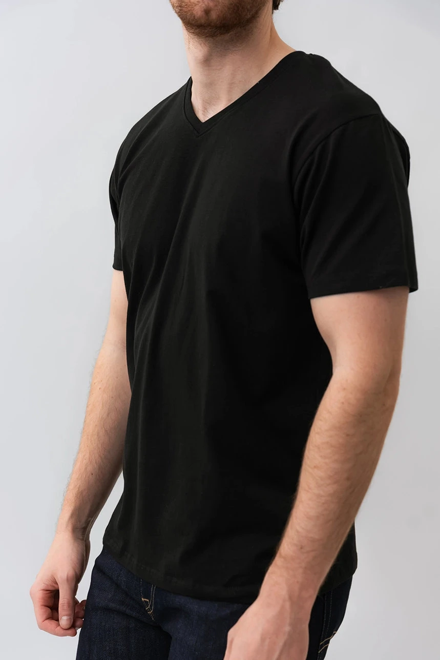 T-shirt basique en coton organique, col en V.