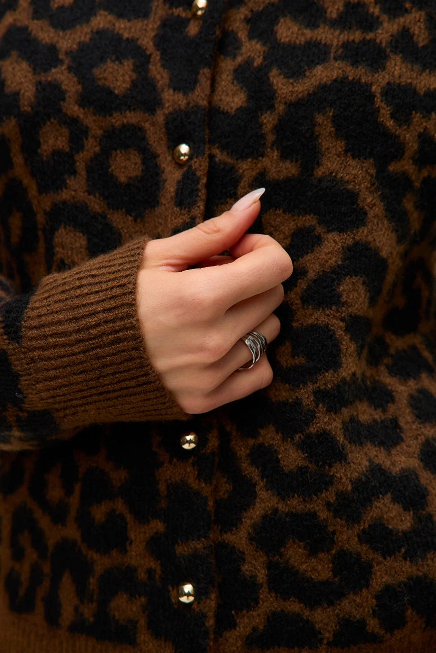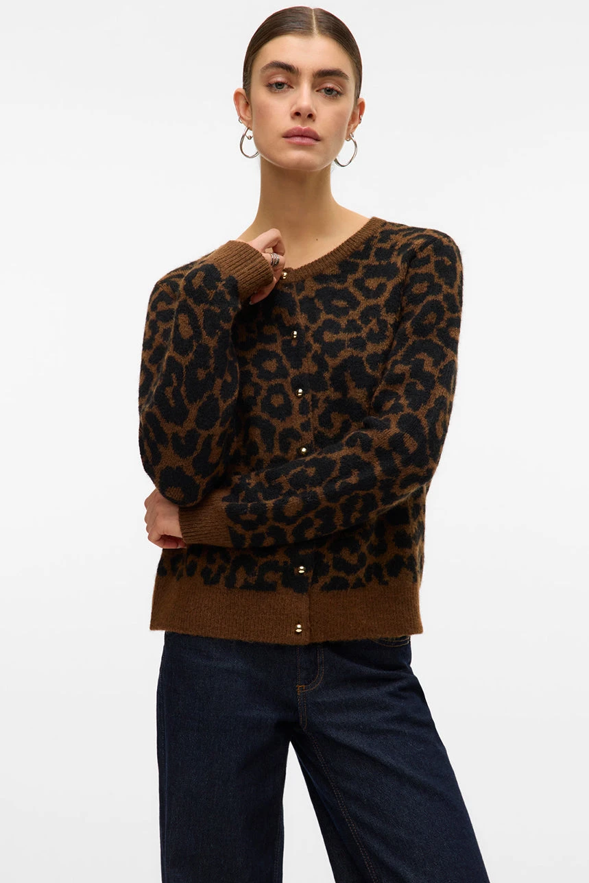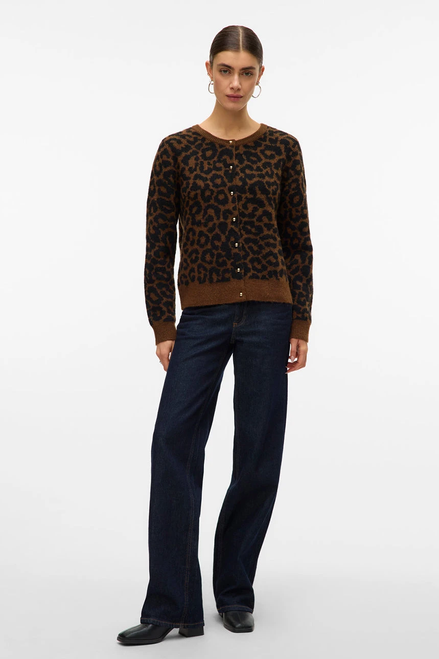 Le cardigan en tricot à motif léopard par Vero Moda présente une coupe droite et courte qui lui confère un style moderne et facile à porter au quotidien. Il est doté d’un col rond classique et de manches longues, offrant confort et élégance, tandis que les bordures côtelées aux poignets et à l’ourlet apportent une finition soignée. Confectionné dans un tricot doux et extensible, il assure une agréable sensation sur la peau tout en permettant une liberté de mouvement optimale. Son motif léopard audacieux ajoute une touche tendance et distinctive, faisant de ce cardigan un incontournable pour dynamiser et personnaliser vos tenues.